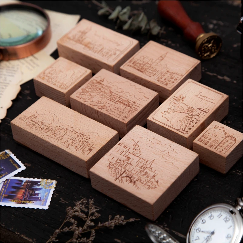 Name: Sueño Series de la ciudad paisaje de madera sello postal tarjeta, sellos conjunto de madera de goma sellos para Álbum de manualidades